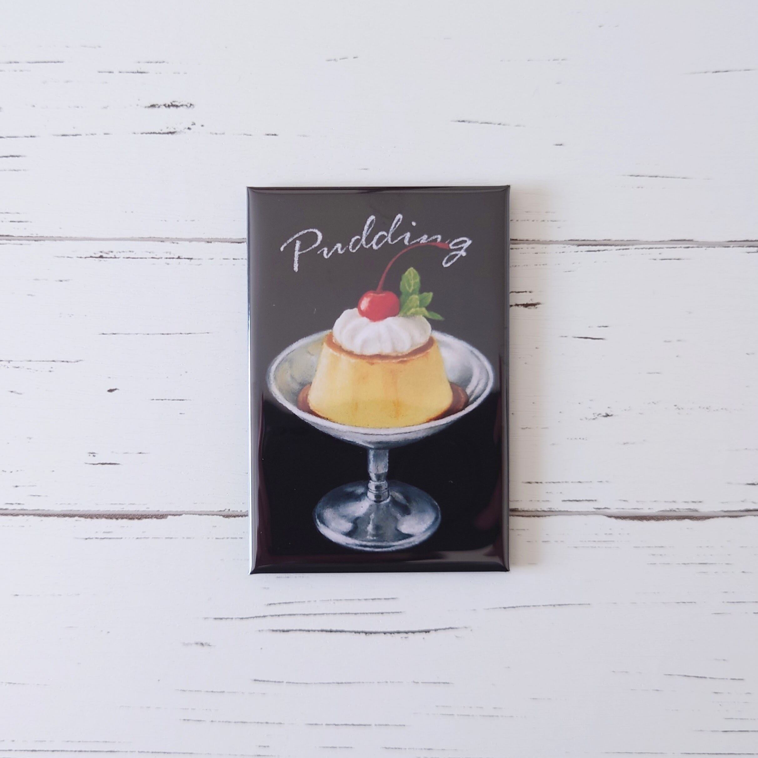チョークアートで描いたプリンのイラストが缶マグネットになりました。
